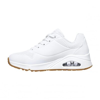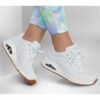 De estilo clásico con la comodidad de la Skechers Street™ Uno – Shimmer Away. Esta moderna zapatilla presenta una parte superior de durabuck sintético y con un ribete metálico, cordones elásticos, plantilla Skechers Air-Cooled Memory Foam® y media suela visible Skech-Air® con cámara de aire.